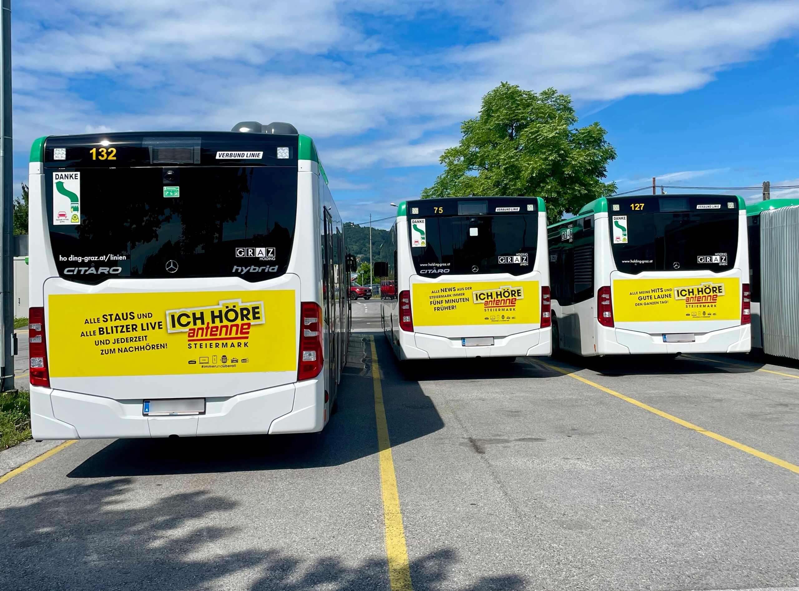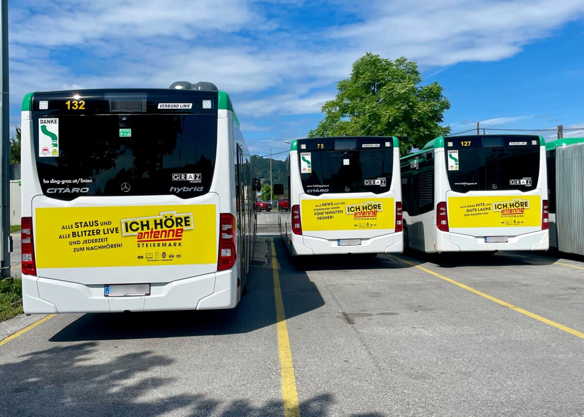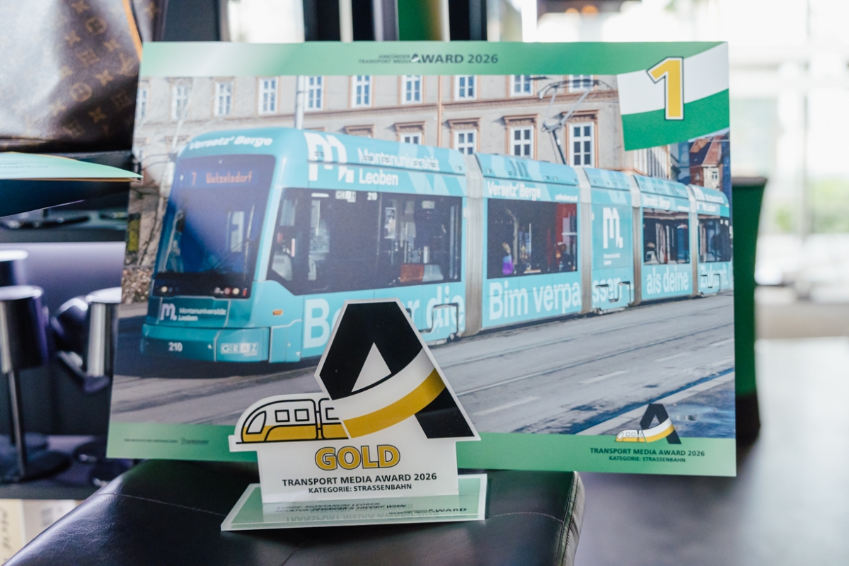 Wir gratulieren herzlich! In der Kategorie Straßenbahn holte die Montanuni Leoben Gold, Silber ging an die Steiermärkische Sparkasse, Bronze an die DADAT Bank. Bei den Buswerbungen dominierten Lucky Car (Jumboheck) und TENZ (Classic Heck), Platz 2 ging an den Murpark Graz (Jumboheck) und die Creative Industries Styria (Classic Heck) und über Rang 3 freuten sich die Terme Čatež (Jumboheck) und die Antenne Steiermark (Classic Heck).